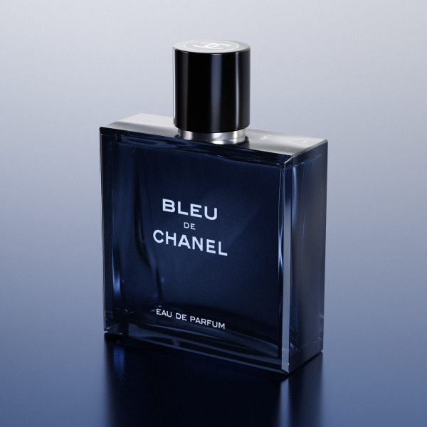 A fully modelled and texturised 3D scene featuring Chanel’s Bleu de Chanel fragrance, including an OOH advertisement (i.e., a billboard). The scene’s composition evokes the elegance, mystery and coolness of the men’s scent – supplemented by the billboard’s low-key lighting, and framing, of a pensive male and a city at night.
